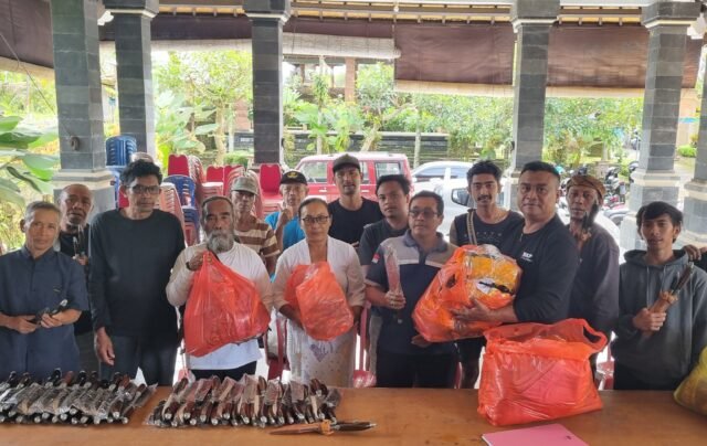 Dalam kesempatan ini, diserahkan sejumlah perlengkapan seperti pisau golok, alat pengutik, serta kebutuhan mejejaitan bagi krama istri. Banjar juga menerima wastra untuk menghias Balai Banjar dan Pura Melanting. Sunarta menegaskan bahwa seluruh Banjar memperoleh bantuan sesuai proposal yang diajukan, dengan pendanaan bersumber dari APBDes 2025.
