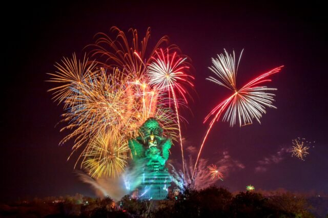 Selama lima tahun berturut-turut, GWK konsisten menghadirkan pertunjukan kembang api berskala besar dengan lebih dari 10.000 letupan cahaya setiap tahunnya. Tahun ini, GWK memperluas pengalaman visual dengan formasi kembang api dari tiga titik berbeda di area Patung Garuda Wisnu Kencana, sehingga pengunjung dapat menikmati hamparan cahaya yang lebih luas dan menyeluruh.