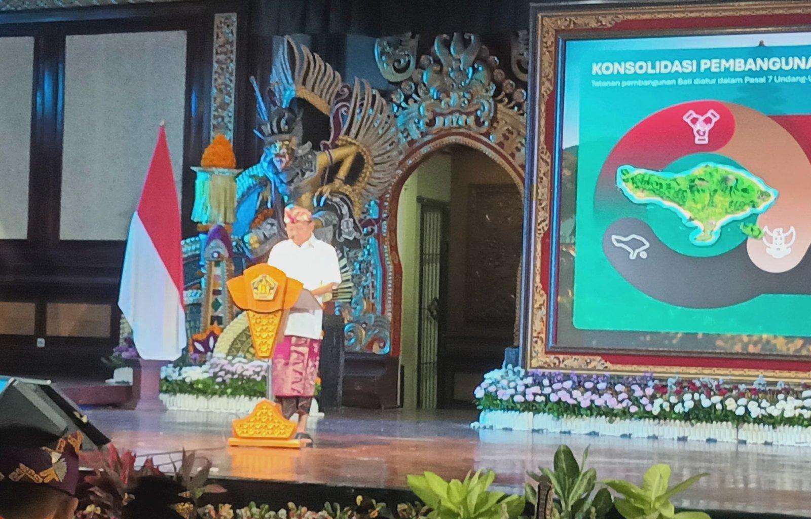 Dalam dokumen haluan pembangunan, Pancasila ditegaskan sebagai landasan idiil, pandangan hidup, dan sumber dari segala sumber hukum di Indonesia. Nilai-nilai Pancasila disebut telah hidup di tengah masyarakat Bali dan diaktualisasikan dalam pembangunan dengan memerhatikan sumber daya serta kearifan lokal untuk mewujudkan kehidupan masyarakat Bali yang sejahtera, bahagia, adil, dan makmur secara niskala-sakala.