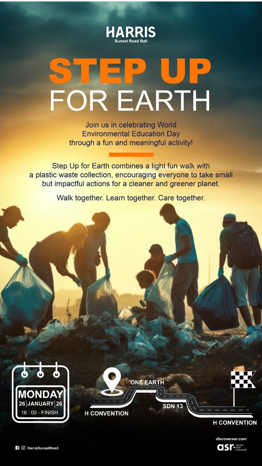 Aksi peduli lingkungan tersebut dikemas dalam kegiatan jalan santai sambil memungut sampah plastik di sepanjang rute dari area HARRIS Sunset Road Bali menuju kawasan Glogor Carik, kemudian kembali ke hotel. Kegiatan ini melibatkan jajaran manajemen serta seluruh karyawan sebagai bentuk kepedulian terhadap kebersihan lingkungan sekitar.