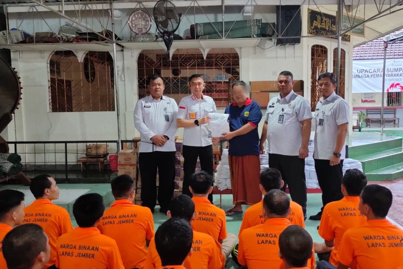JEMBER – Dunianewsbali.com, Lembaga Pemasyarakatan (Lapas) Kelas IIA Jember kembali menegaskan komitmennya dalam memberikan pelayanan terbaik bagi Warga Binaan Pemasyarakatan (WBP). Kali ini, pihak Lapas menggelar kegiatan pembagian pakaian ibadah dan perlengkapan mandi sebagai bentuk pemenuhan hak dasar bagi seluruh warga binaan.