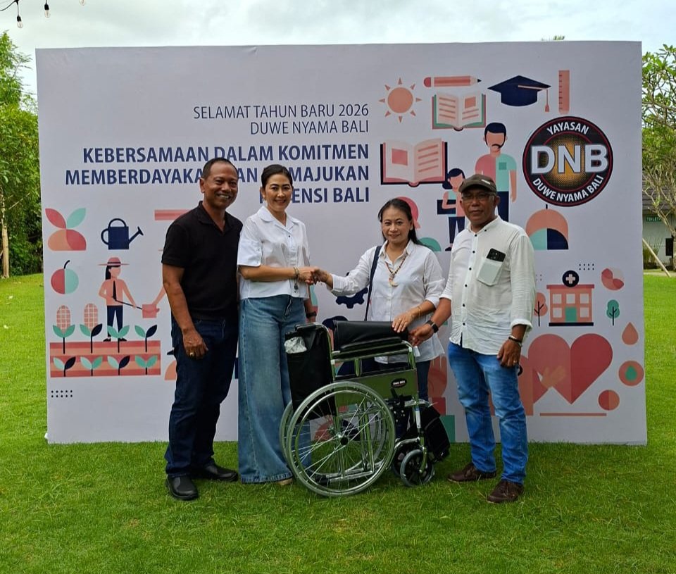 Di sela kegiatan, Yayasan Duwe Nyama Bali juga melaksanakan aksi sosial dengan menyerahkan bantuan kursi roda secara simbolis. Bantuan tersebut diserahkan oleh Ajik DNB bersama istri kepada perwakilan yayasan untuk kemudian disalurkan kepada warga yang membutuhkan, berdasarkan data penerima manfaat yang telah diverifikasi.