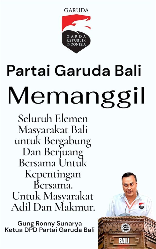 DENPASAR – Menjawab kebutuhan akan figur pembawa perubahan di Pulau Dewata, DPD Partai Garuda Bali meluncurkan program khusus “Partai Garuda Memanggil”. Inisiatif ini secara resmi membuka pintu bagi generasi muda dan kelompok terpinggirkan untuk bergabung dan berkontribusi membangun Bali.