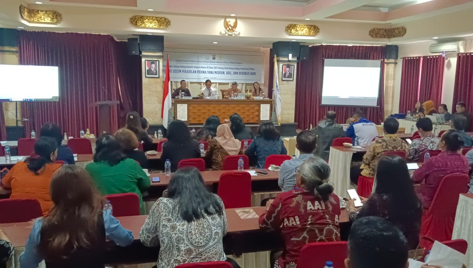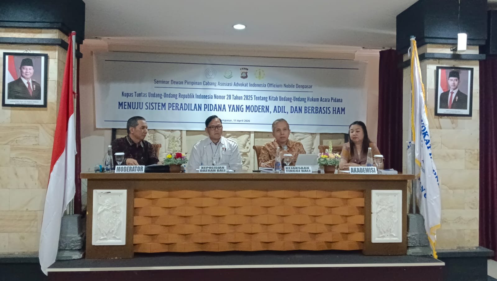 DENPASAR | Dunia News Bali – Dewan Pimpinan Cabang Asosiasi Advokat Indonesia Officio Nobile (AAI ON) Denpasar menggelar seminar hukum yang membahas secara komprehensif pembaruan Kitab Undang-Undang Hukum Acara Pidana (KUHAP) melalui Undang-Undang Republik Indonesia Nomor 20 Tahun 2025. Kegiatan ini merupakan bagian dari rangkaian peringatan Hari Jadi AAI ke-34 dan berlangsung di Meeting Room Hotel Puri Nusa Indah Denpasar, Sabtu (11/4/2026).