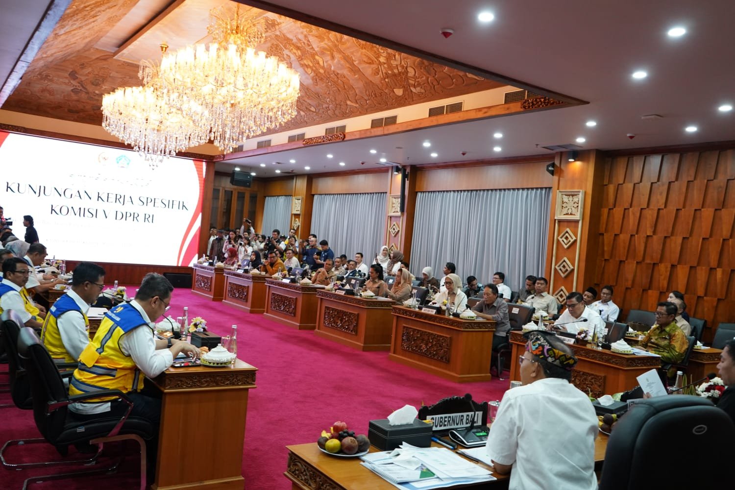 DENPASAR | Dunia News Bali – Gubernur Bali Wayan Koster menerima kunjungan kerja Komisi V DPR RI di Gedung Kertha Sabha, Jayasabha, Denpasar, Kamis (12/2). Pertemuan tersebut membahas capaian pembangunan Bali, tantangan strategis yang dihadapi, serta usulan program infrastruktur prioritas untuk mendukung pembangunan ke depan.